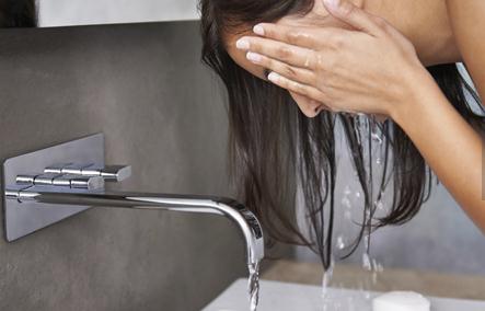 3、用温水将脸部清洗干净,用凉水将脸部冲洗干净。