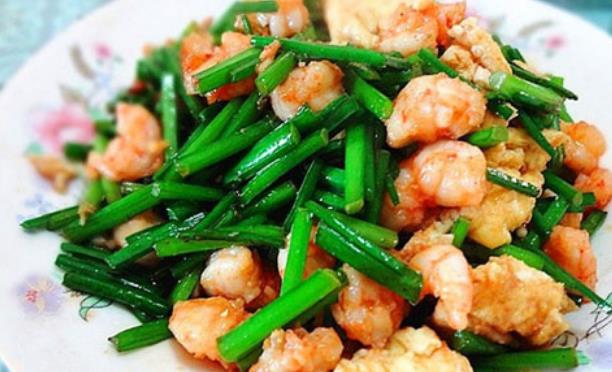 1、韭菜180克,鲜虾240克,素油、味精适量。将鲜韭菜切成3厘米长的段,备用,鲜虾去壳,备用。将锅烧热,放人菜油,待油泡化尽即倒入韭菜、鲜虾,反复翻炒撒下味精、食盐,炒匀即起锅。可佐餐,用以下酒更有效。