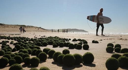 生物学家认为,这是一种非常罕见的海藻,在天气暖和及海浪较大的情况下被冲到沙滩上。这些海藻“抱团”的原因是防止自己被鱼类吃掉。