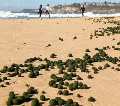 澳大利亚悉尼的Dee Why海滩上最近出现大量绿色“海藻蛋”。当地人这对《每日邮报》称,此前从没见过这种神秘“活海藻球”。