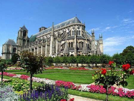 大教堂坐落在一个花团锦簇的花园中,厅堂的四周环绕着间隔整齐的高大扶壁,格外引人注目。看起来仿佛是在腾飞跳跃。在欧洲的哥特式建筑中,布尔日大教堂堪称其中的典范。