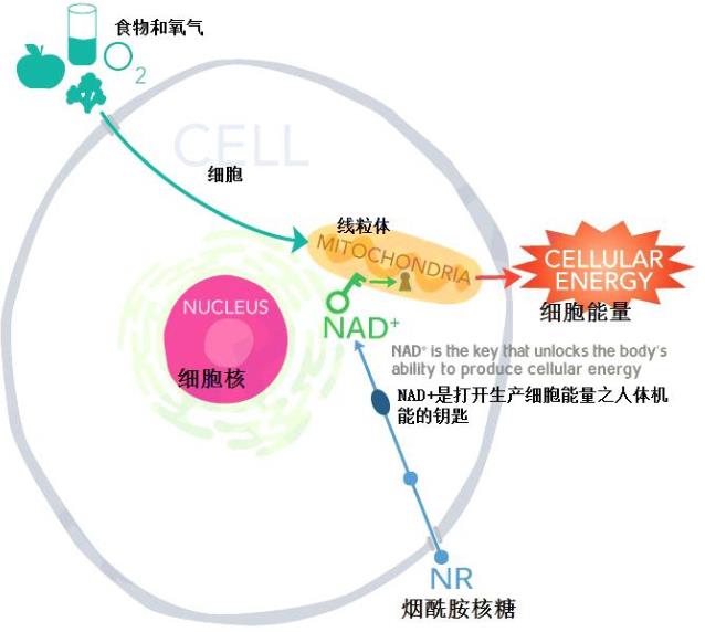 NAD是脱氢酶的辅酶,它在糖酵解和呼吸链中发挥着不可替代的作用。中间产物会将脱下的氢递给NAD,使之成为NADH(NAD+)。而NAD+则会作为氢的载体,在呼吸链中通过化学渗透偶联的方式,合成ATP。NAD+是激活乙酰化酶不可缺少的物质,会随着年龄增长减少。NAD+在细胞中的作用: