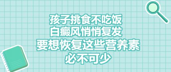 其实,在儿童白癜风患者中,这种因为挑食偏食诱发白癜风的病例并不少见。儿童时期正值孩子身体发育的关键阶段,对营养的要求是非常高的。长期挑食偏食的话,就会导致孩子的身体摄入的微量元素不足,而如果缺少了以下几种微量元素,就有可能会诱发白癜风或者导致白癜风复发了。