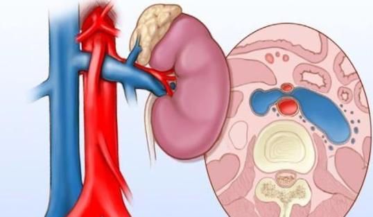 即左肾静脉被夹在肠系膜上动脉及主动脉之间。男性常伴精索静脉曲张。