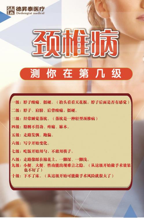全民沉迷手机、电脑、IPAD等电子世界,久坐不动已成常态,进而让颈椎病近年来跨进了“流行词”一行列,从老到少、男到女无不风靡。可颈椎病引发的头晕、视力模糊、脖子酸痛、耳鸣等实在是让人痛苦不堪。以全民健康为宗旨的德昇泰医疗,特此送上一波护理颈椎病的干货,下面我们来一起看看德昇泰医疗如何修整这纠缠不休的颈椎病的吧。