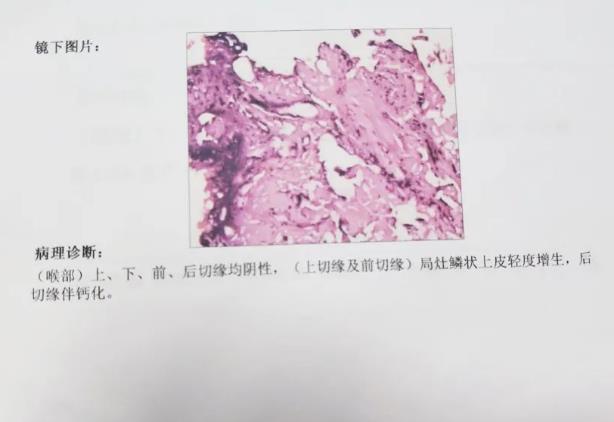 手术顺利,麻醉苏醒后转回五官科病房。术后2天拔出引流管。经过术区疼痛、气管导管不适应及营养欠佳等等的折磨,现患者情况良好,呼吸通畅,进食无呛咳,言语较清晰,术区恢复良好,目前患者已康复出院。