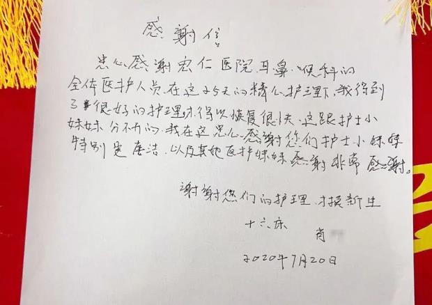 “感谢的话憋在心里好久了,我以为我这辈子都不能在说话了,真的非常感谢各位医务人员的悉心治疗!”