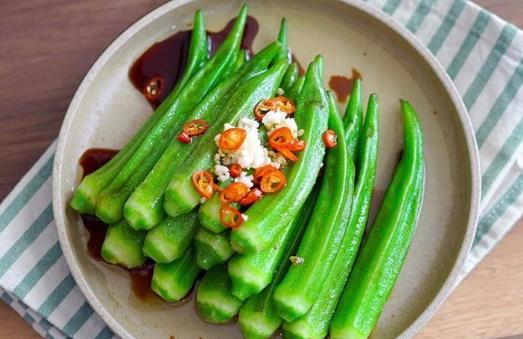 秋葵可凉拌、热炒、油炸、炖食,做色拉、汤菜等,在凉拌和炒食之前必须在沸水中烫三五分钟以去涩。它的属性偏寒凉,烫熟后蘸掺有蒜末、辣椒末的酱油食用,可以稍微平衡它的寒凉,但脾胃虚寒、容易腹泻或排软便的人,还是不宜吃太多。秋葵加入咖喱和其它调味料一起煮,味道便迥然不同,对秋葵不大习惯的人,不妨一试。