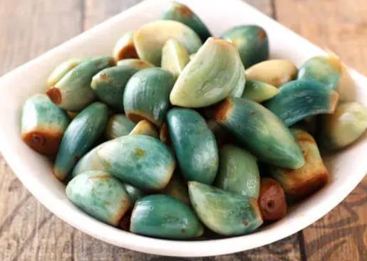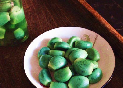 腊八蒜是一种传统小吃,主要流行于中国北方,尤其是华北地区。在农历十二月初八,大蒜是腌制的。事实上,食材很简单:醋和大蒜。方法也非常简单。将去皮后的大蒜放入罐、瓶等容器中,然后倒入醋,封口,放在冷的地方。慢慢地,用醋泡过的大蒜会变成绿色,最后变成绿色,就像翡翠一样。