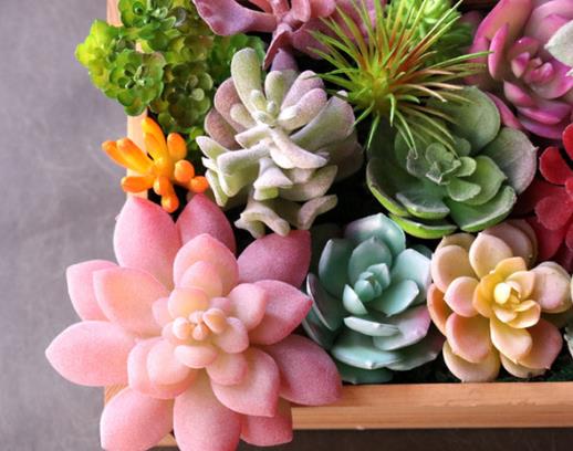 在给多肉拼盘的时候,我们还要注意多肉的颜色。尽量的将色差调大一些,这样在视觉上的冲击会更强,观赏性也会更高。