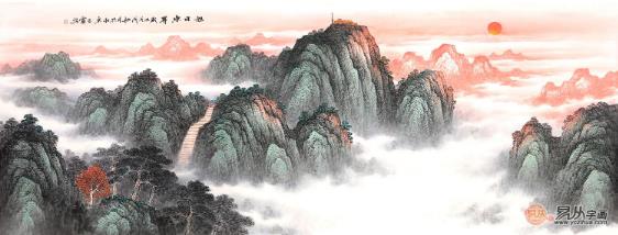 王宁泰山日出六尺横幅山水画《旭日东升》 作品来源:易从网