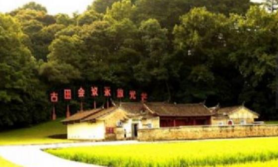 古田会议旧址古田会议会址位于上杭县古田镇溪背村。原系廖氏宗祠,建于道光二十八年(1848年),红四军进驻古田后改名为“曙光小学”。祠堂由前后厅和左右厢房组成,建筑面积826平方米。1929年12月,毛泽东同志主持的红四军第九次代表大会在此召开,通过了具有历史意义的古田会议决议案。目前,会址大厅已恢复当年开会的原貌。马克思、列宁画像和代表席位、大会会标、主席台以及墙上的党旗都按原样放着。会址左边有荷花池,右边有红军检阅台,后面竖立“古田会议永放光芒”8个红色大字,背后是茂密的树林。