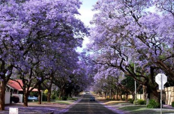 蓝花楹隧道从世界上最大的人造森林约翰内斯堡一直延伸至南非花园城比勒陀利亚,是一个完全由蓝花楹装扮而成的隧道,充满了天然之美和蓝紫色之美,已经成为南非最受欢迎的旅游目的地之一。蓝花楹于一百多年前被引进到南非,对于南非来说由于与众不同的意义,每个人都喜欢蓝花楹的蓝色和紫色,这个神奇的蓝花楹隧道更成为人们心目中最美丽的地方。蓝花楹隧道拥有70000多棵蓝花楹,盛开时使整个城市到处呈现出绚烂紫色和蓝色。