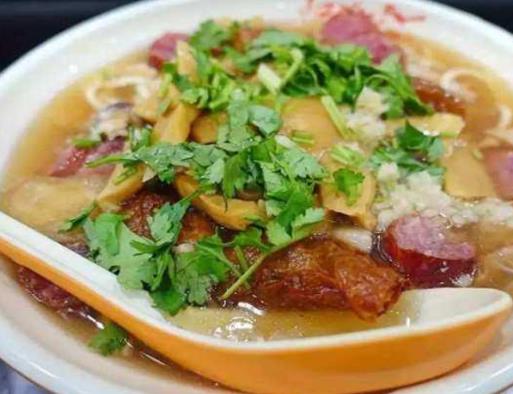 猫仔粥是福建诏安特有的一种传统名吃,名蜚中外。它以米饭、海鲜、家禽肉等为原料,经独到的烹饪技巧,聚于一锅。粥清见底,虾红、鱿白、鱼血、鸡黄、肉赤,色泽相映,数荤一素,清鲜醇美,风味独特。食材特别的多样,吃起来味道特别鲜美。
