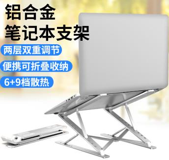 镂空的设计,让笔记本的进气空间得到最大的释放。支架可以进行6档调节,当做IPAD支架也是可以的,最高可以调整到平视的角度,有助于预防颈椎病。铝合金的支架有助于本本的导热,同时配备了前档硅胶垫,防止本本滑落。支架本身可以折叠,方便外出携带。