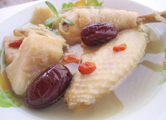 配料:榴莲壳、鸡肉、红枣、枸杞子、盐、生姜。