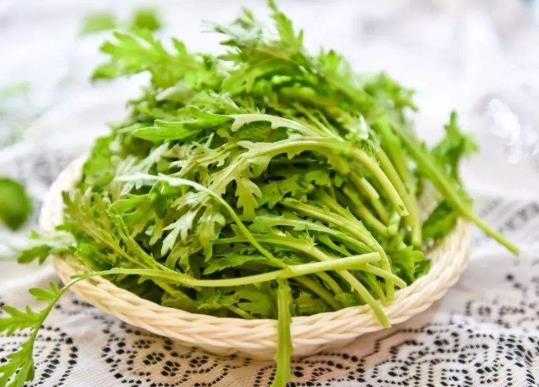 茼蒿是一种素食,经常吃可以减肥。除此之外,茼蒿还含有丰富的维生素、胡萝卜素和多种氨基酸,经常食用茼蒿可以帮助我们安神养心,降压润肺,同时也能防止记忆力减退,但吃茼蒿的时候一定要适量,切莫多吃。