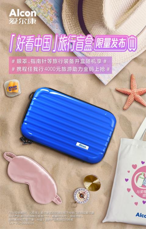 6月1日至6月18日期间,消费者可在天猫或京东爱尔康官方旗舰店或线下经销门店购买爱尔康指定产品,即可获得限量旅行盲盒一个,数量6100个,领完为止。通过扫描盲盒内明信片二维码进入爱尔康SCRM小程序,进行在线抽奖。中奖者可获得携程任我行4000元旅行助力金、旅行装备好物Airpods pro耳机、产品试用装、积分等奖品。
