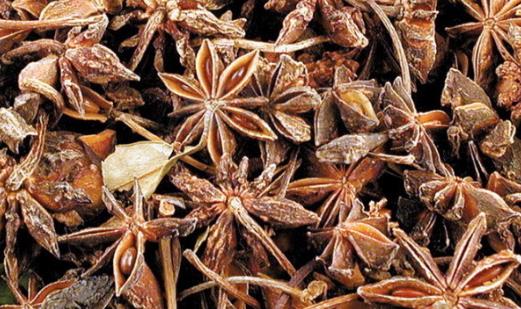 八角(学名:Illicium verum Hook.f.),是八角茴香科、八角属的一种植物。乔木,树冠塔形,椭圆形或圆锥形;树皮深灰色;枝密集。叶不整齐互生,倒卵状椭圆形,倒披针形或椭圆形;正糙果3-5月开花,9-10月果熟,春糙果8-10月开花,翌年3-4月果熟;花粉红至深红色,单生叶腋或近顶生;果梗长20-56毫米,聚合果饱满平直,蓇葖多为8,呈八角形。八角果为著名的调味香料,也供药用。果皮、种子、叶都含芳香油,是制造化妆品、甜香酒、啤酒和食品工业的重要原料。