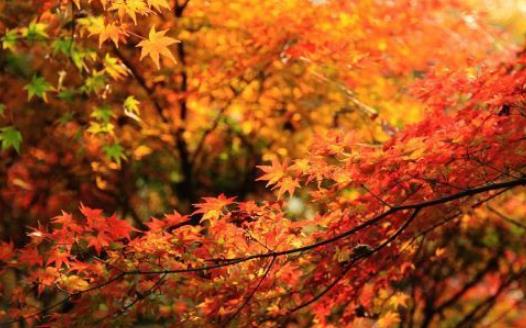 拾阶登山,两旁枫林高低掩映,疏密相间,红影闪动,千娇百媚,尽显万种风情。红的虽然艳丽,却并不见低俗。舒展的尖尖红叶,满枝满梢,好像迸射的万千火星,于一刹那间被凝固,便化作了这一棵棵美丽的枫树。