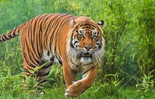 苏门答腊虎仅分布在印度尼西亚的苏门达腊岛,它们的生活坏境遍布平原、森林以及高山。苏门答腊虎雄虎的体重在100-150公斤,体长234厘米,雌虎的体重在75-100公斤,体长为198厘米,是现存的世界上最小的老虎。
