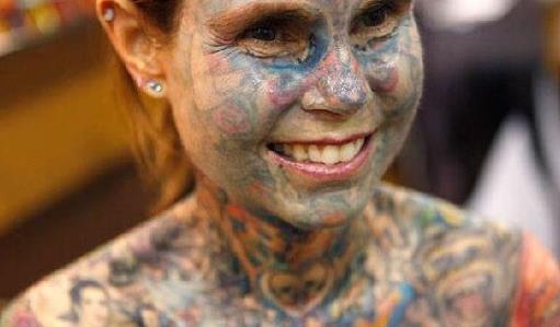 但没想到的是,随着时间的增加,这种现象开始像身体的各处蔓延,她也便开始利用此方法在身体的各处纹上纹身,用来“对付”这种怪异的病,最后这才导致了她的纹身遍布全身,到现在所有皮肤中只有5%的皮肤幸免于难。