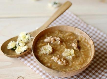 鲜山药100克,扁豆、胡桃肉各50克,粳米60克。将山药洗净切片,与扁豆、胡桃肉、粳米同入锅内,加水适量煮粥,待粥熟后加精盐、味精、生姜、葱花调味食用。
