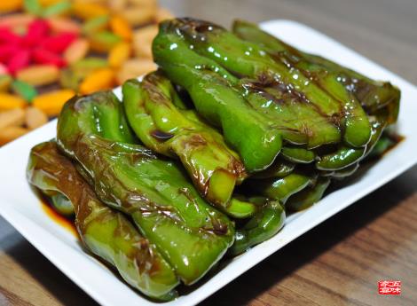2、这是一道快手炒菜,青椒入锅加入调味料翻炒均匀即可关火,不要时间长,以免影响青椒的口感。