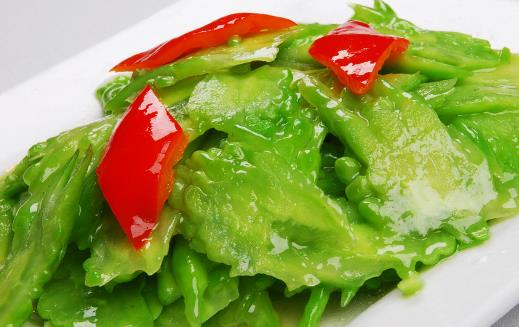 一般来说,苦瓜苦味较淡甚至有清甜味的菜肴,其中的苦瓜片都是斜切并且薄到有点透明,所以只要在切苦瓜采用斜切的方式,就能把苦瓜的苦味最大程度散掉。