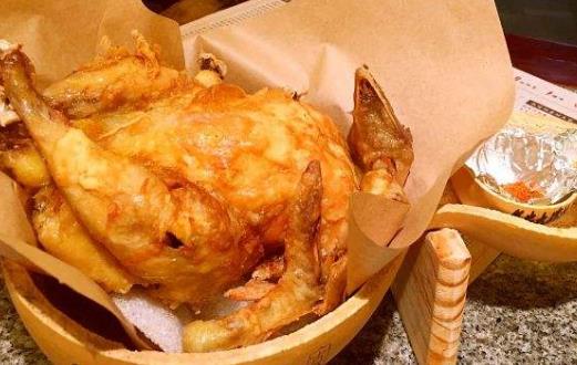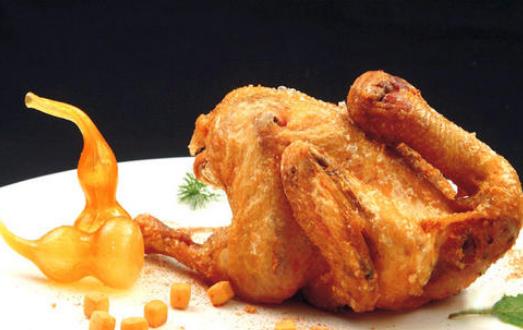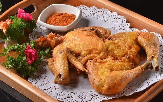 3、 炸时油温应略高些,以增加鸡皮酥脆程度。