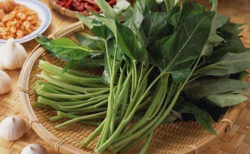 空心菜:空心菜性平、味甘;归胃、肠经。空心菜富含维生素、蛋白质,脂肪、钙、磷、铁等成分。常吃空心菜能清热解毒、润肠通便、凉血止血、利尿消肿、和胃行气。可主治便秘、口臭、小便不利、尿血、夏季痈肿、龋齿痛等。同时适宜糖尿病、高血脂患者食用。空心菜含有烟酸、维生素C等,能降低胆固醇、甘油三酯,具有降脂减肥的功效。