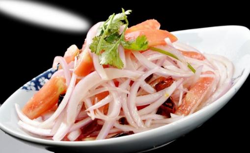 制法:将葱头剥去老皮洗净,直刀切成片,再改刀切成粗丝或小块;辣椒直刀切成丝共装盘内,然后拌上精盐、酱油、陈醋,最后滴上香油,搅拌匀即好。