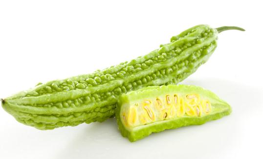 苦瓜,因苦得名,也叫凉瓜。清暑清热、明目、解毒。治热并中暑、痢疾、赤眼疼痛、肿痛丹毒、恶疮。苦瓜也是夏季用来清暑去热的蔬菜。苦瓜含有丰富的维生素B、C、钙、铁等,李时珍说苦瓜具有“除邪热、解劳乏、清心明目、益气壮阳”之功效。据研究发现,它具有明显的隐血糖作用,对糖尿病有一定疗效。它还有一定的抗病毒能力和防癌的功效。