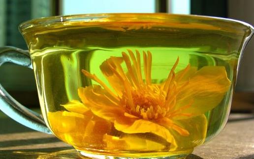 金莲花被称外“塞外龙井”,民间还有“宁品三朵花,不饮二两茶”的说法。冲泡后不仅茶水清澈明亮,还有淡淡的香味。金莲花具有清热解毒、养肝明目和提神的功效。金莲花是有一定药性的,所以在冲泡饮用时,用量不能过多。金莲花味苦,性寒,无毒,产地河北承德、内蒙等,多年生草本,无毛,含生物碱、黄酮类,有清热解毒,治上感,扁桃体炎,咽炎,急性中耳炎、急性鼓膜炎,急性淋巴管炎,口疮等功效,但金莲花是一种药物植物,需要按照方法小心服用,方能发挥其作用,切不可胡乱服用,不加节制。