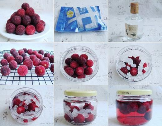 5、把晾干的杨梅依次轻放至玻璃容器中。